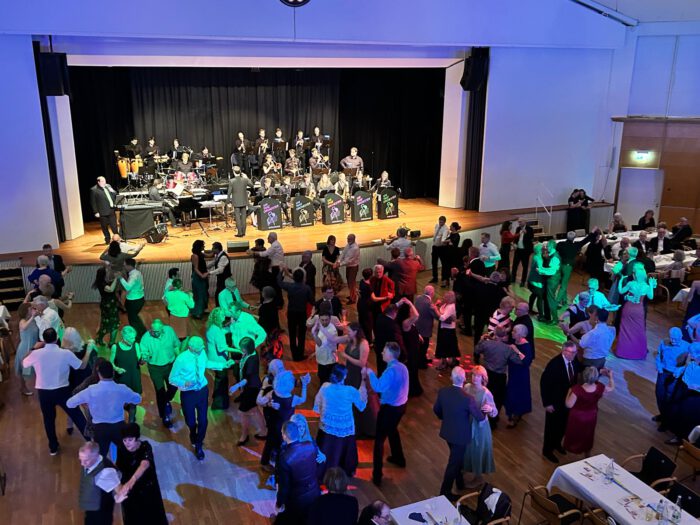 Für die perfekte Tanzstimmung sorgte das Uni-Tanz-Orchester Karlsruhe. Mit 25 Musikerinnen und Musikern und purer Tanzmusik im klassischen Big-Band-Sound begeisterte das Orchester das Publikum und lud immer wieder dazu ein, das Tanzbein zu schwingen.